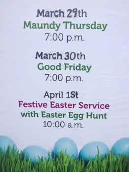 • Easter, 4/1/2018, 10am, followed by coffee hour and an Easter egg hunt for children